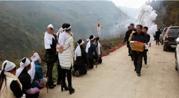 Nhà trai đến đón dâu lúc 5 giờ sáng. Khi xe vừa đến, họ bàng hoàng thấy trước mắt mình là chiếc rạp đen trắng – rạp dựng lên cho ngày giỗ. Mẹ tôi bước ra, trên đầu đội chiếc khăn trắng, không hề sợ hãi trước ánh mắt sững sờ của nhà trai.