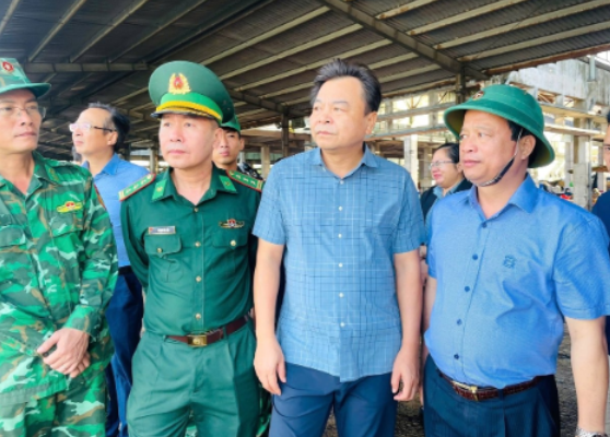 Thứ trưởng Nguyễn Hoàng Hiệp cùng lãnh đạo tỉnh Gia Lai kiểm tra tàu thuyền tại cảng Quy Nhơn chiều 5/11 (Ảnh: Bộ Nông nghiệp và Môi trường).