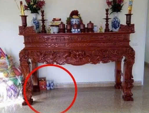 Đṑ vật ⱪiêng ⱪỵ ᵭặt dưới chȃn bàn thờ